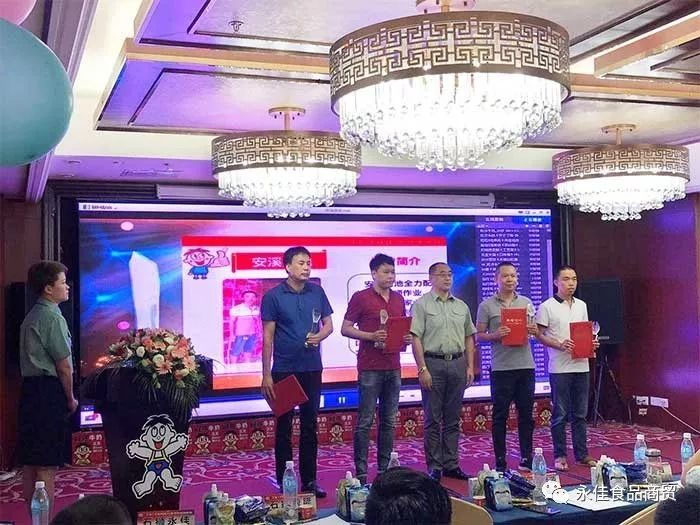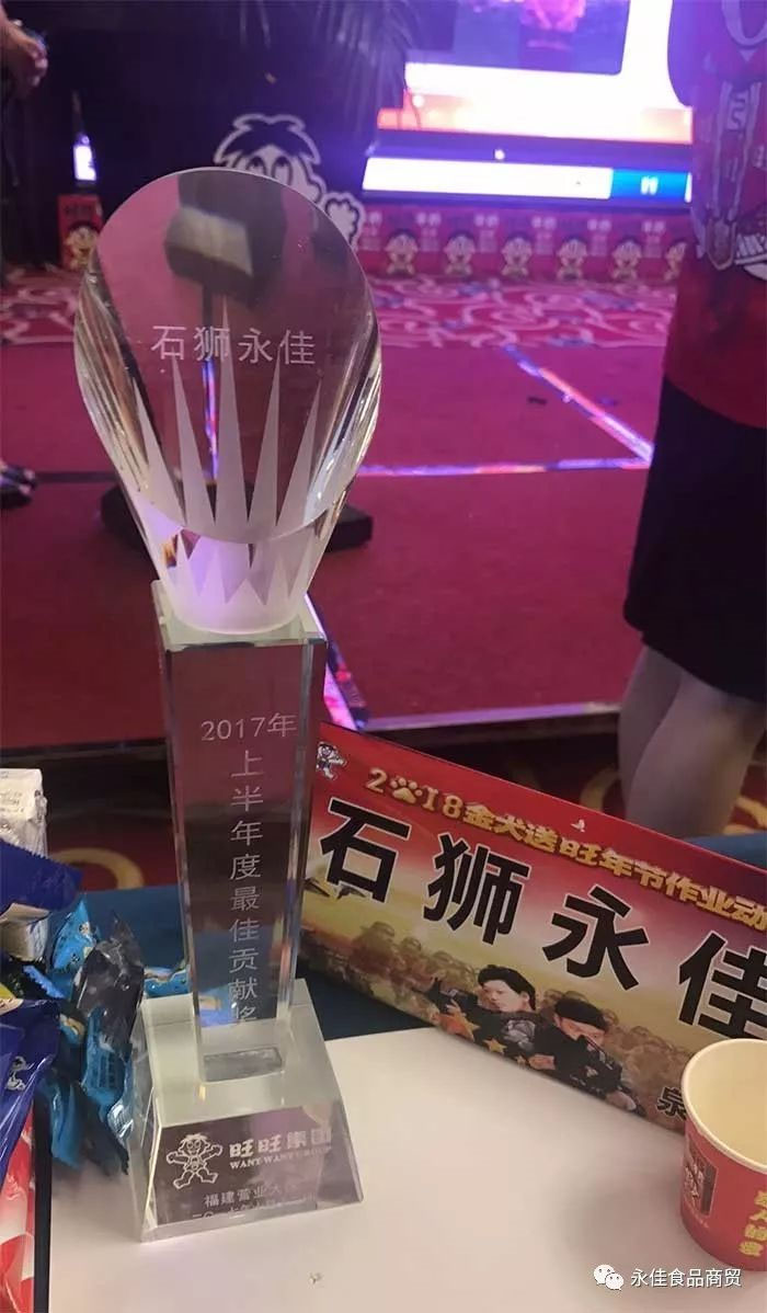 2017年10月12日,旺旺集團福州分公司“2018金犬送旺年節(jié)作業(yè)動員會”在福州召開,來自全省的幾十名經銷商代表和旺旺公司總監(jiān)李文革、福州分公司領導和全體員工出席了此次大會,我司領導莊培鎮(zhèn)等參加了此次大會。旺旺公司負責人在會上對2017年上半年市場動態(tài)、銷售業(yè)績做了詳細總結,對優(yōu)秀員工和經銷商進行了表彰,并對年節(jié)產品做出了任務布署,永佳食品商貿榮獲“2017最佳貢獻獎 ”。