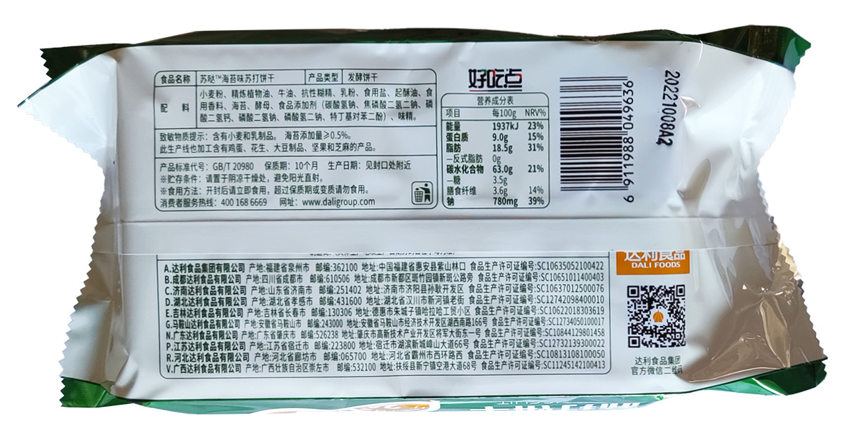 100g好吃點(diǎn)蘇噠蘇打餅干(海苔味)