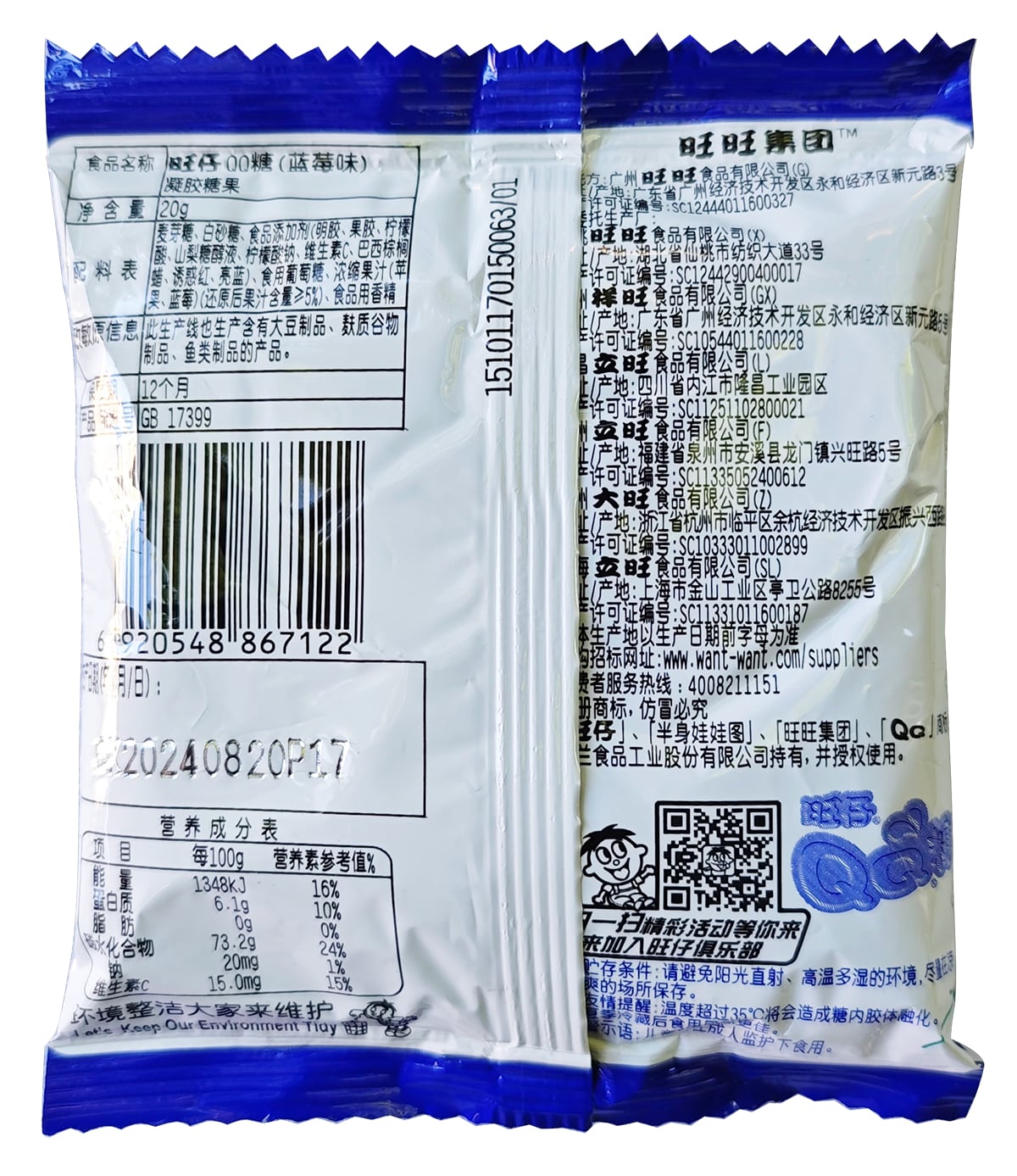 20g旺仔QQ糖藍(lán)莓